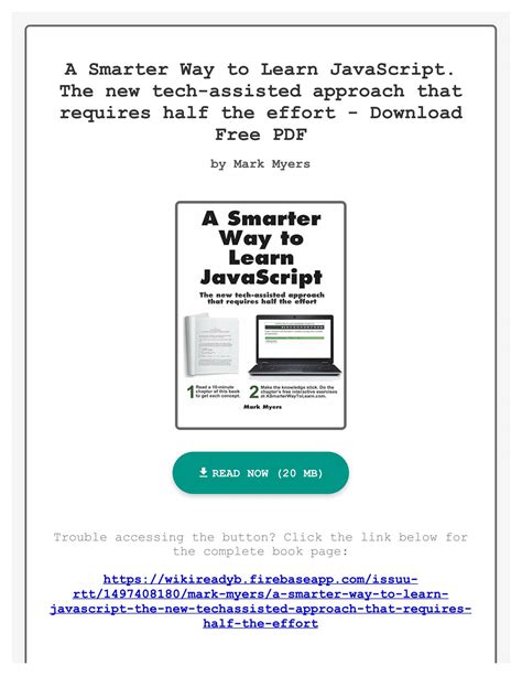 Download A Smarter Way to Learn JavaScript The new tech-assisted approach that requires half the effort Reader online is a convenient and frugal way to read A Smarter Way to Learn JavaScript The new tech-assisted approach that requires half the effort you love right from the comfort of your own home. Yes, there sites where you can get Reader "for free" but the ones listed below are clean from viruses and completely legal to use.